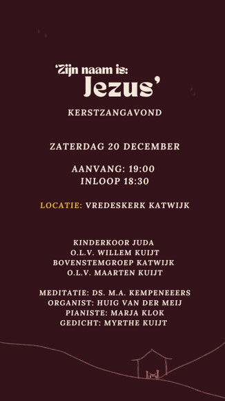 20 dec kerstzangavond Vredeskerk 19.00 uur.